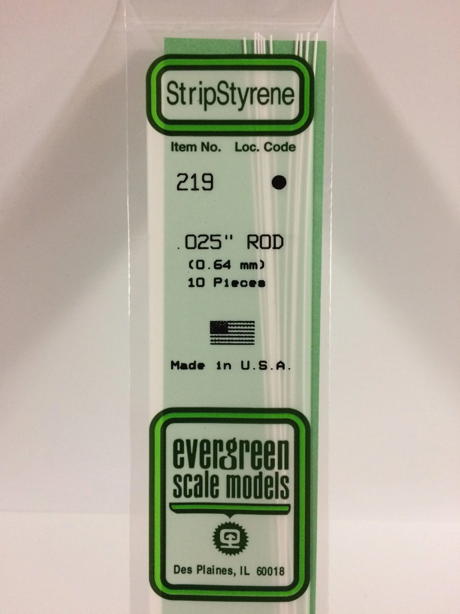 Evergreen 219 – .025″ (.64MM) OD WHITE POLYSTYRENE ROD