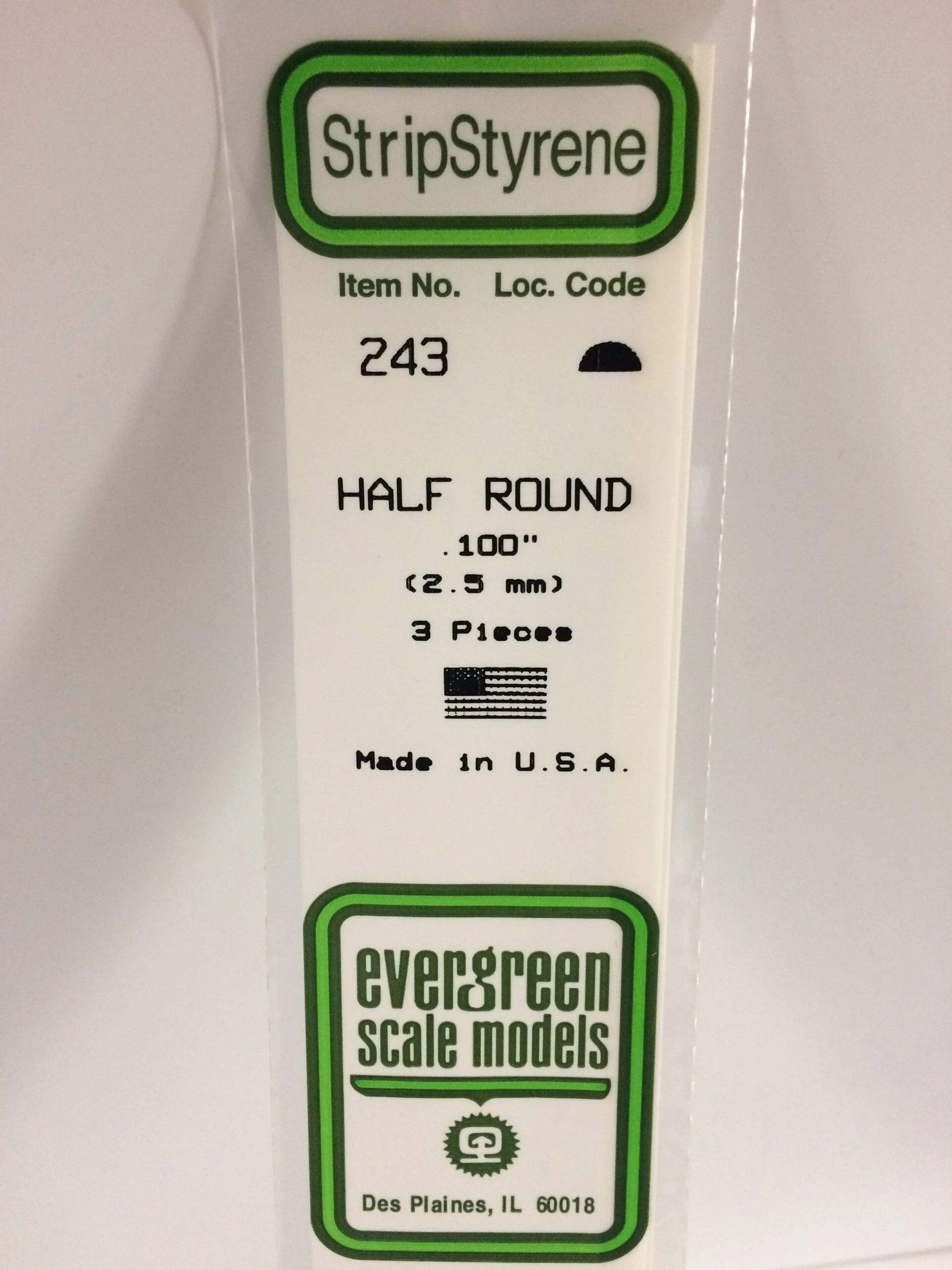 Evergreen 243 – .100″ (2.5MM) OPAQUE WHITE POLYSTYRENE HALF ROUND