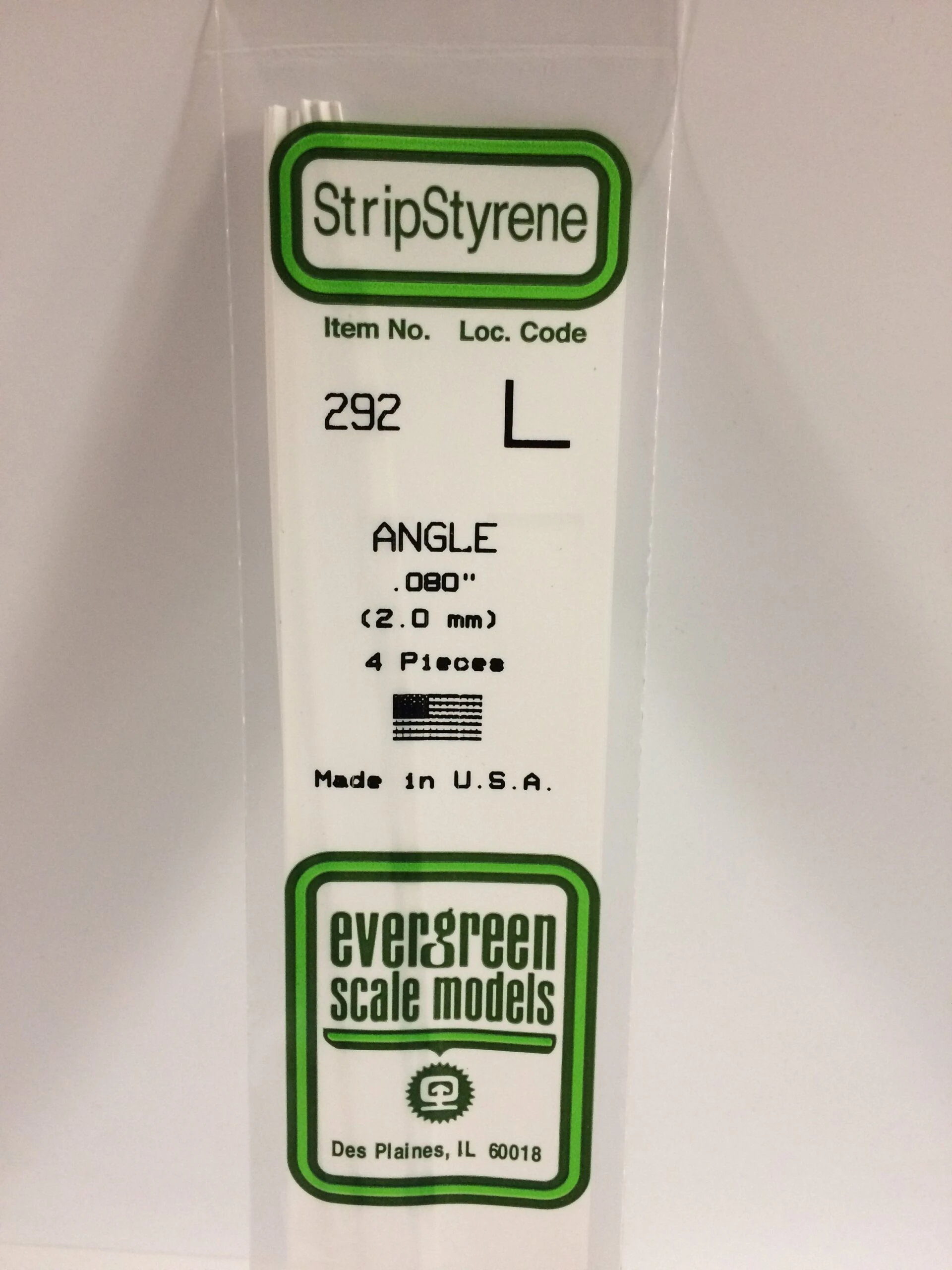 Evergreen 292 – .080″ (2.0MM) OPAQUE WHITE POLYSTYRENE ANGLE