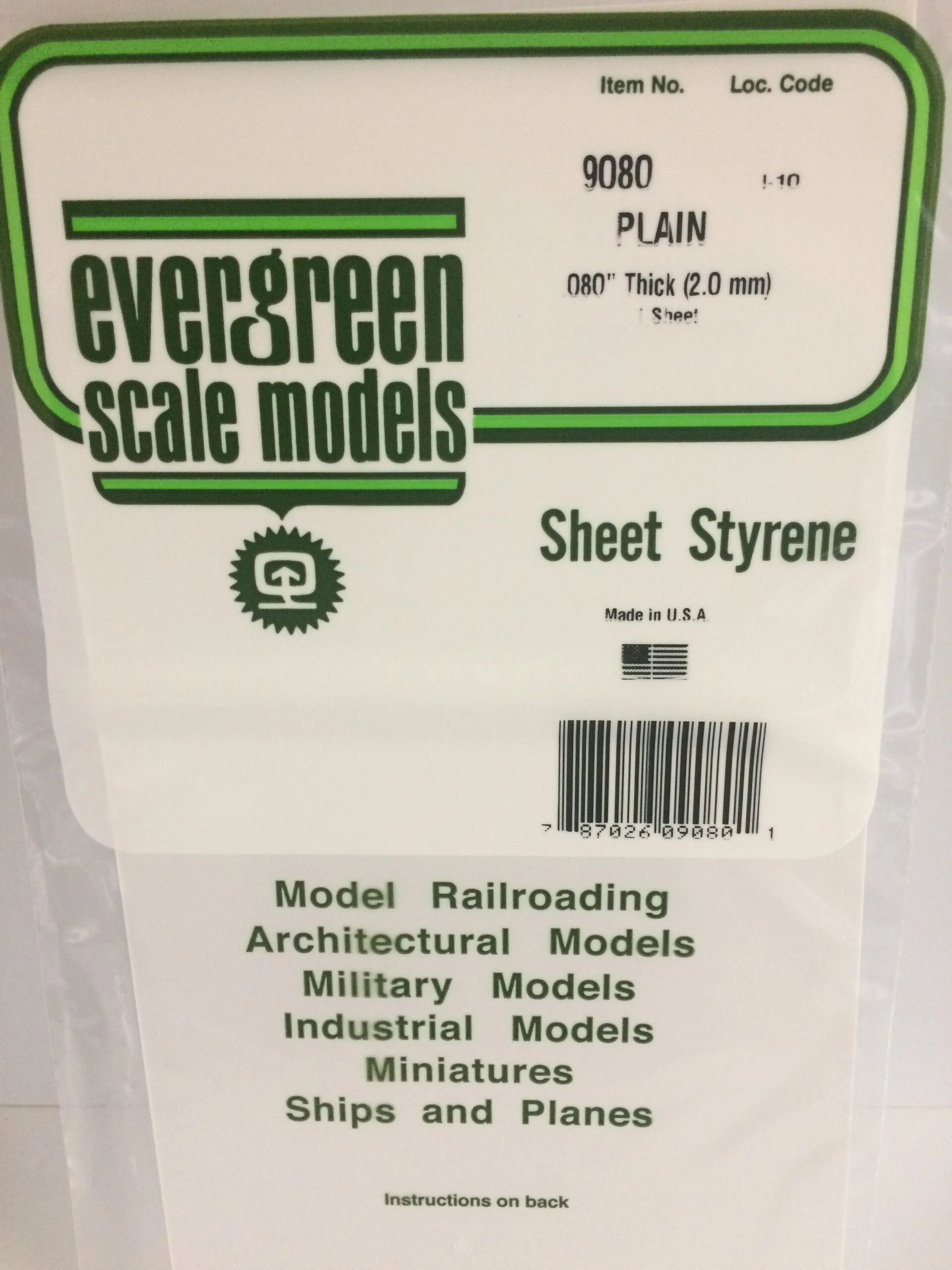Evergreen 9080 – .080″ (2.0MM) PLAIN OPAQUE WHITE POLYSTYRENE SHEET